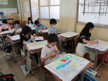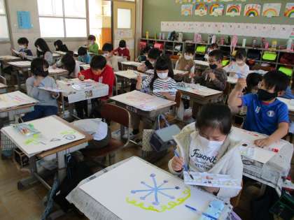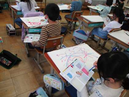 3年 図画工作 絵のぐ+水+ふで=いいかんじ!