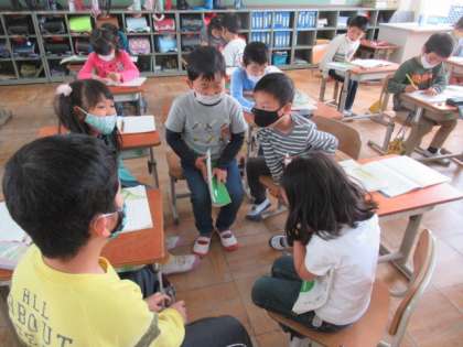 国語の「ふきのとう」の音読大会をするために,グループで相談して役割を決めているところです。どんな音読を発表をしてくれるのか,今からとても楽しみです。