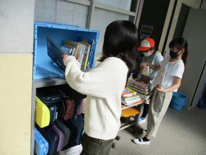 クラスの本係の人が学級文庫をたくさん借りてくれました。