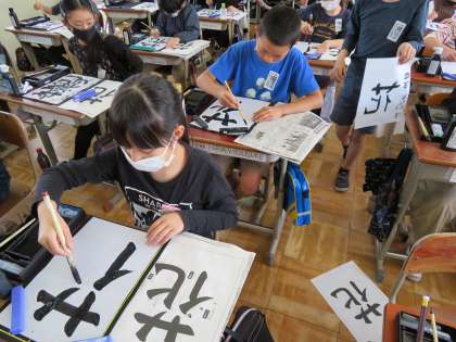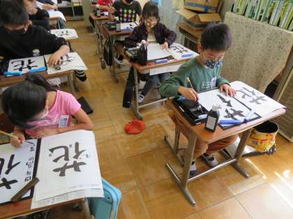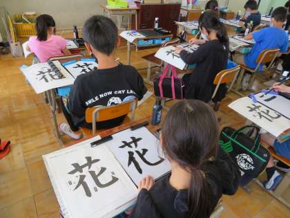 書写の学習で「花」の字を書きました。