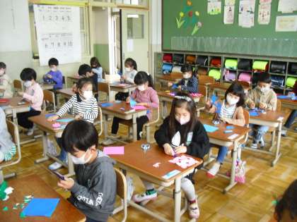 【1ねんせい】はさみで ちょきちょき