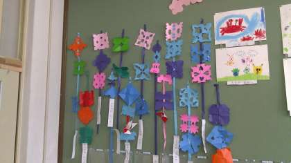 みんなの かざりが ひらひらと