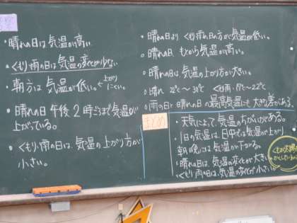 算数で学習した折れ線グラフを使って,気温の変化をグラフに表しました。