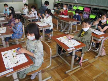 きょうは,「じゃんけんぽん」のうたに あわせて りずむをうつがくしゅうを しました。「ぐうぐうぐう」にあわせて 「たん たん たん うん」のりずむを うちました。まずは てびょうしでうちました。つぎは かすたねっとで りずむを うちます。まずは かすたねっとの もちかたや うちかたを がくしゅうしました。みんな やさしく すてきなおとで 「たん たん たん うん」のりずむをうてましたね。「かすたねっとのべんきょう たのしかった。また やりたいな。」とかんそうを はなしてくれました。