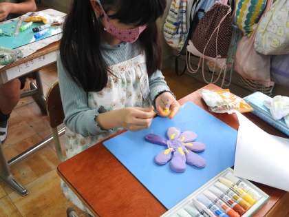 どれぐらい絵の具を混ぜたら,自分の気に入った色が出るのか,量を工夫することができ,とってもきれいな色が出せました。