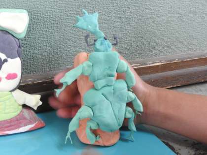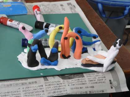紙ねんどに絵の具を混ぜて発色させています。