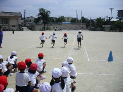 1年生は50m走や障害物走、団体競技などを行います。