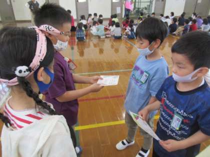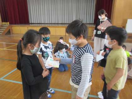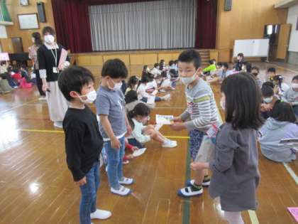 お互い顔を覚えたかな。一緒に楽しく学校探検をしてほしいと思います!