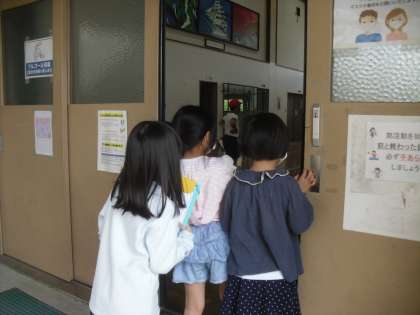 体育館をのぞいている様子です。
