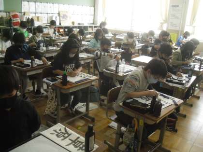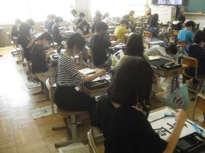 5年生の書写の学習で,毛筆に取り組んでいます。お手本をよく見ながら,正しい姿勢・正しい持ち方…。考えることはたくさんありますが,これまでに学んできたことを生かして,どんどん上手になってほしいと思います。