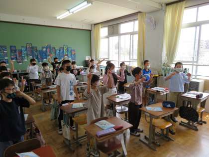 外国語の学習で音楽に合わせて天気をいう練習をしました。