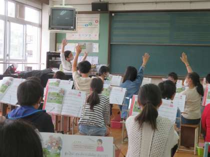 歌詞を音読し,歌詞のリズムを感じ取りました。