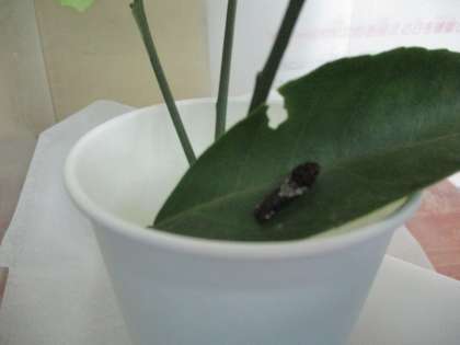 アゲハチョウの幼虫です。全部で3匹見つけたので