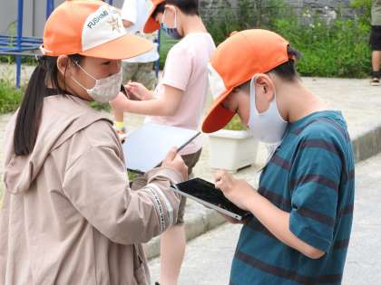 撮影した画像を見合ったり,情報を足したりして,記録を残しました。