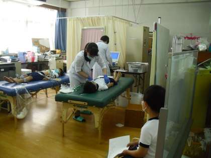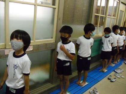 ほけんしつで しんでんずけんさを しました。 はじめての ことなので ちょっとふあんに おもっていたひとも いましたね。でも,みんな おちついて しずかに けんさを うけることができました。
