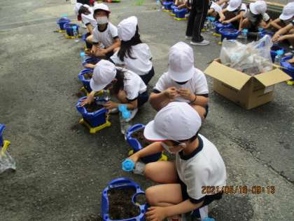 きょうは きのう かんさつした あさがおの たねを まきました。