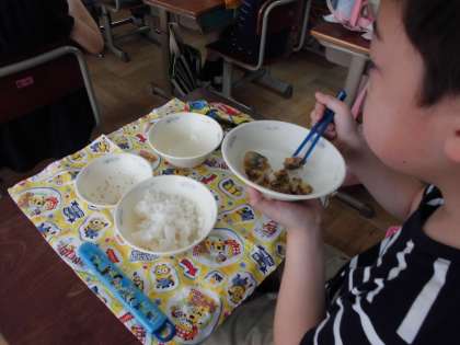 食の指導後,よく噛んで食べようと意識して食べる姿が見られました。