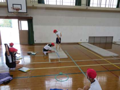 自分で目標をたてて,その距離をこえられるように跳び方に気を付けてとんでいました。