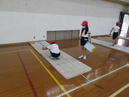 新体力テストで立ち幅跳びを行いました。