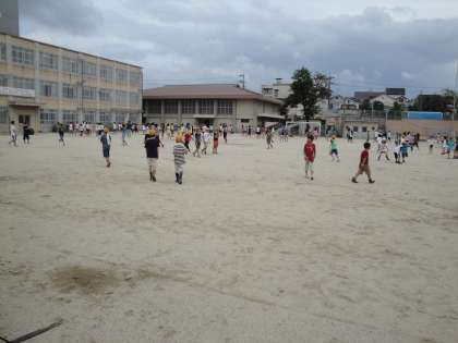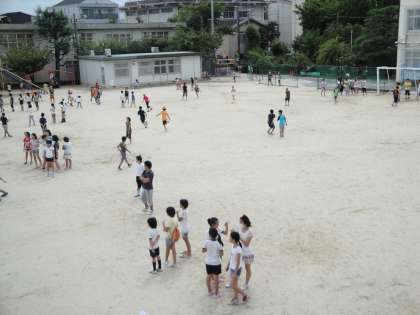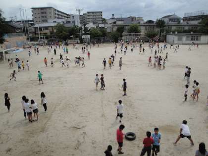 昼休み,子どもたちは運動場で元気に学級ごとのみんな遊びをしていました。教職員も参加したり,見守ったりしていました。