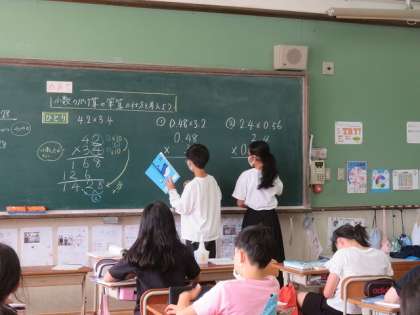 今日は,小数のかけ算の筆算のしかたを考えました。