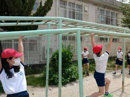 今日は,2年生ぶりに総合遊具やジャングルジム,うんていといった遊具を使ったり,様々なレクリエーションをして楽しみました。