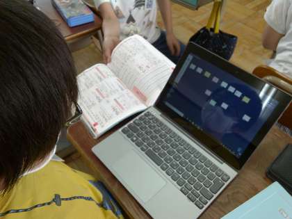 板橋タイムでは,ギガ端末を使って,『漢字の部分しりとり』をしました。