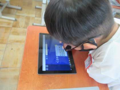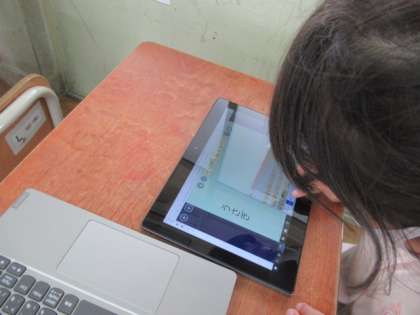 タグブレットを使って,文字を入力したり,スタンプを押したりと楽しんでいます。
