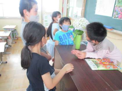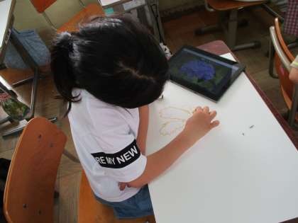 教室では実際にあじさいを見てみました。