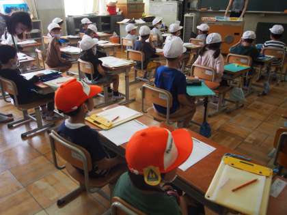 葉っぱの形を「キツネみたい。耳がでてるよぉー」