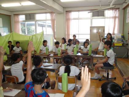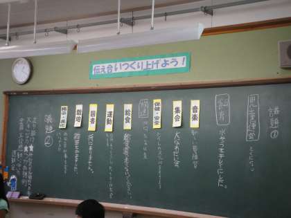 昼休み,3年生以上の代表委員が集まり,活動報告や運動会のスローガンについて話し合いました。