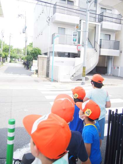 先日の1年生が交通安全教室で学んだことをいかして,公園まで行くことができました。