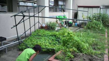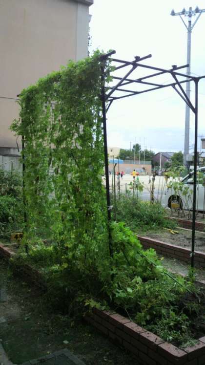 先日の台風で,畑で育てていたツルレイシのたながたおされてしまいました。