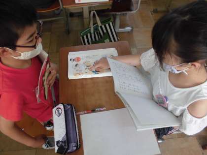 時を表す漢字を使いながら,教科書の絵に合う文を作っていきました。