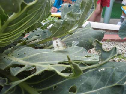 皆が育てたモンシロチョウなのか…ずっと皆の周りを飛んでいました。
