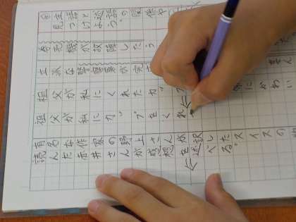 「うーん・・。」と,じっくり考え,友だちと相談し合いながら取り組んでいる6年生です。