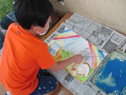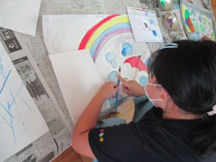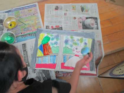 雨の日の雰囲気を出したい人はタンポでポンポン。