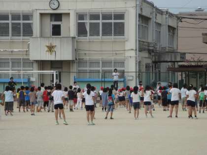 中間休み,運動会の全校体操の練習を運動場で行いました。今日は,赤組の練習でした。白組に負けないぐらいの一生懸命な練習でした。