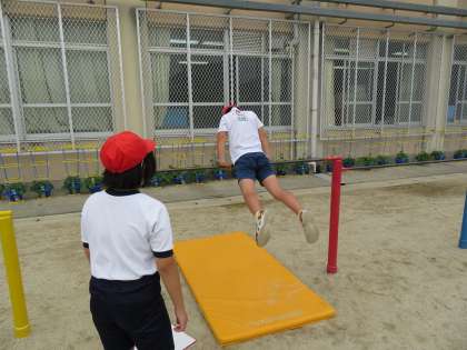 体育は鉄棒運動運動を行っています。