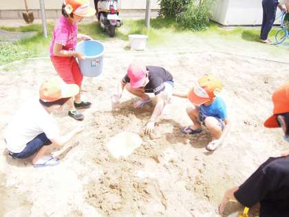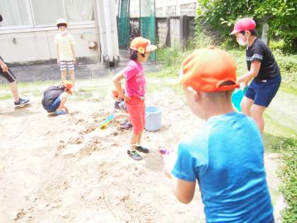 思いっきり遊びました。どろの感触を楽しんだり,掘って川をつなげたり…