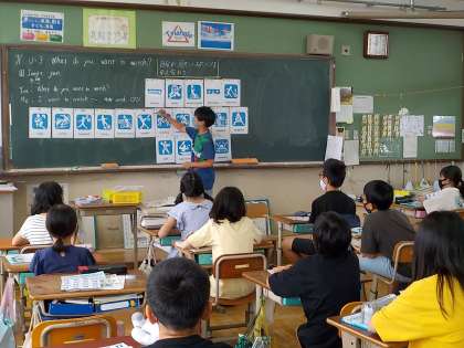 みんなで英語で楽しくやり取りをしている6年生です。