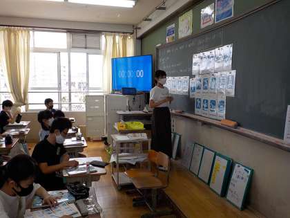 東京オリンピック・パラリンピックでどんな競技種目を見たいかを英語で伝え合っています。