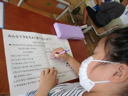 がくしゅうの まとめでは,いまの じぶんは しょくじの マナーをどれだけまもれているか チェックしました。