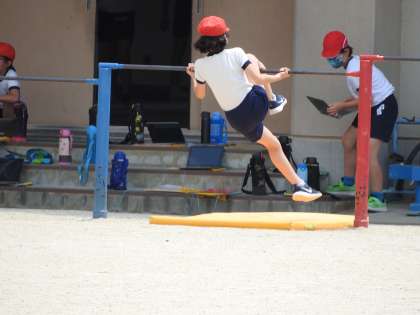 水泳学習が始まっていますが,その学習の前は,てつぼう運動をしていました。