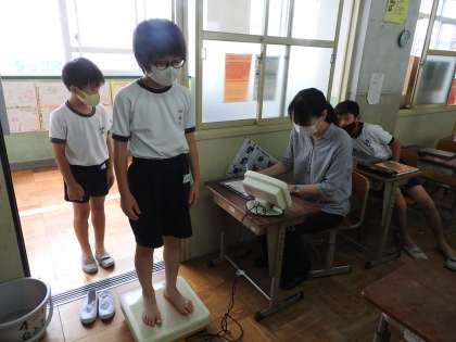 【4年】教室で体重測定