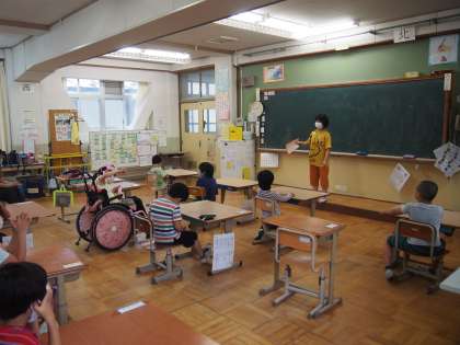 ひまわりの代表で話す児童がみんなの前で練習しました。
