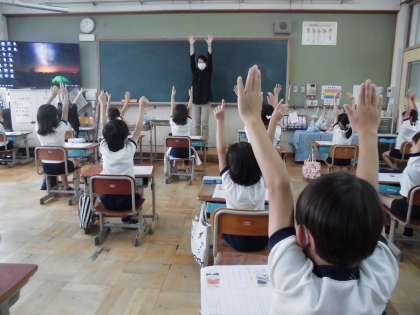 事前指導で,森先生から血の巡りをよくする体操を教えていもらいました。