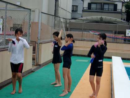 準備運動〜水慣れは,自分たちでどんどん進めていきます。