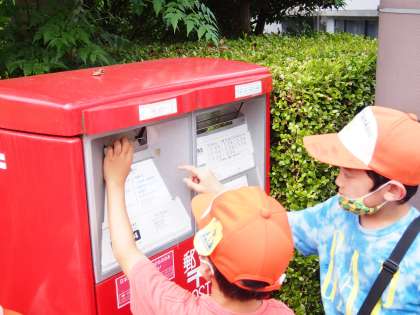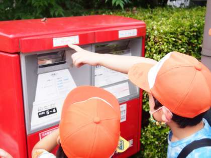 「こっちにハガキって書いてあるで。こっちにいれるでー」