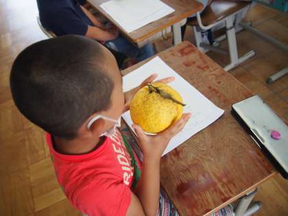 教室に夏ミカンのあまずっぱい香りが広がりました。